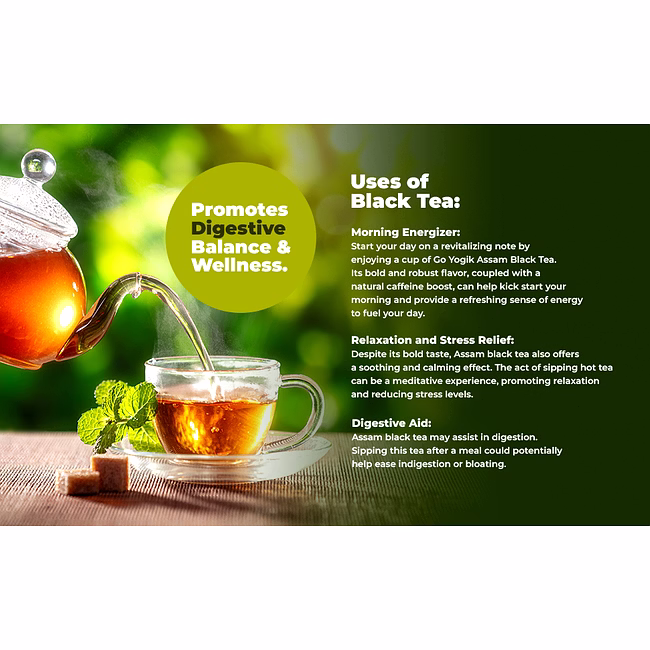 - Go-Yogik Black Tea is grown in Himalayas at elevations of over 800 m (2,400 ft) above sea level at the Tea Estate in Meghalaya, 100miles from Darjeeling, India