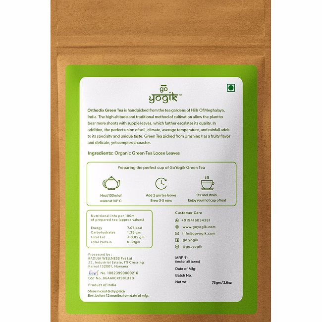 Go-Yogik Organic Loose Green Tea 75g | Himalayan tea
